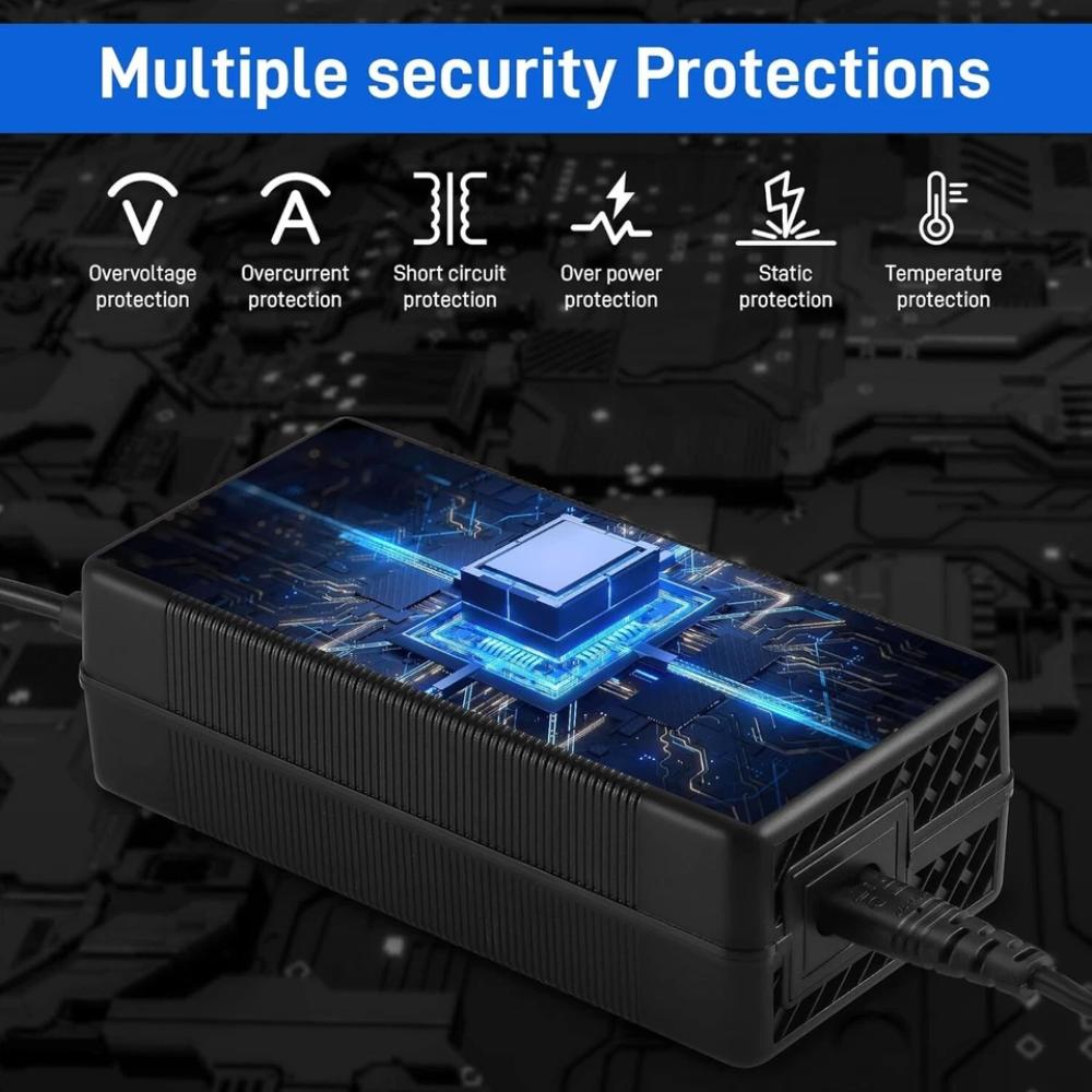 Effizientes Aufladen + Umfassende Sicherheit: Vollständige Aufladung der meisten Lectric E-Bikes in 6-10 Stunden mit 2A Stromstärke. Ausgestattet mit Überspannungs-, Überstrom-, Überhitzungs- und Kurzschlussschutz, schützt vor Akku Schäden und verlängert die Lebensdauer.