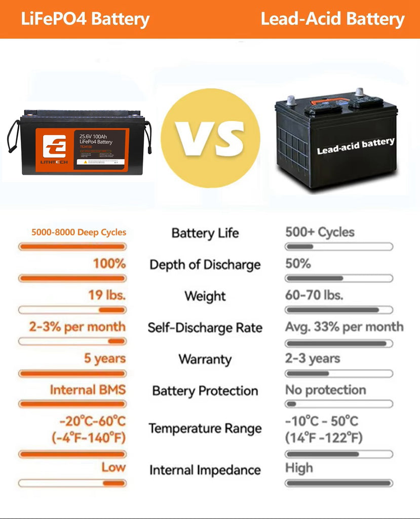 - 24V 100Ah LiFePO4 Akku, 100 W Leuchtmittel halten ca. 25 Stunden. während mit 12V 100Ah LiFePO4 Akku nur ca. 12 Stunden. laufend. Im Allgemeinen ist 1 x 24 V 100Ah 2 x 12V 100 Ah gleich, was Zeit und Kosten für die Leitungen spart, um die Energie zu verlängern und die Spannung nicht zu kompensieren. Durch die Verwendung von A-Klasse-Zellen ist die Qualität der Batterie zuverlässig. P.S LiFePO4-Batterie kann nicht im Golftrolley verwendet werden.