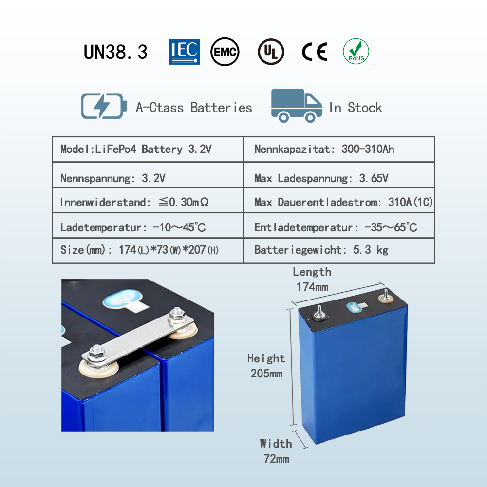4packs 3.2V 302Ah lifepo4 DIY 12v 24v 310ah Akkupack für Elektroauto RV Solaranlage