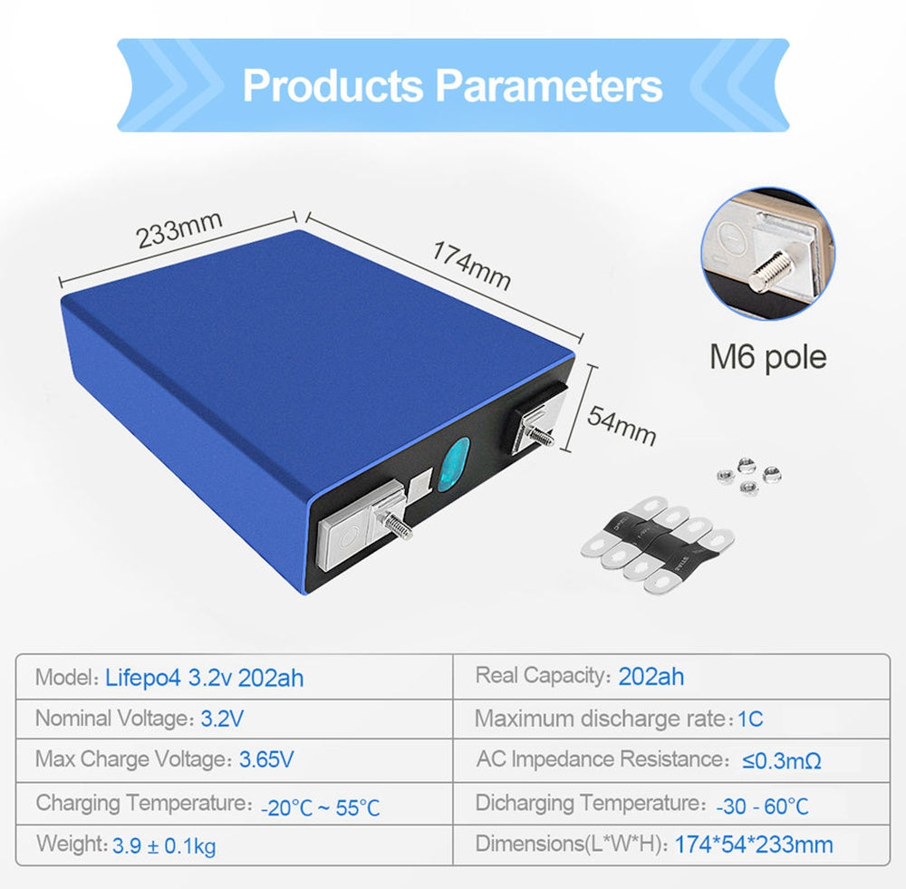 - 4 x 3.2V 202ah lifePO4 Batterie
