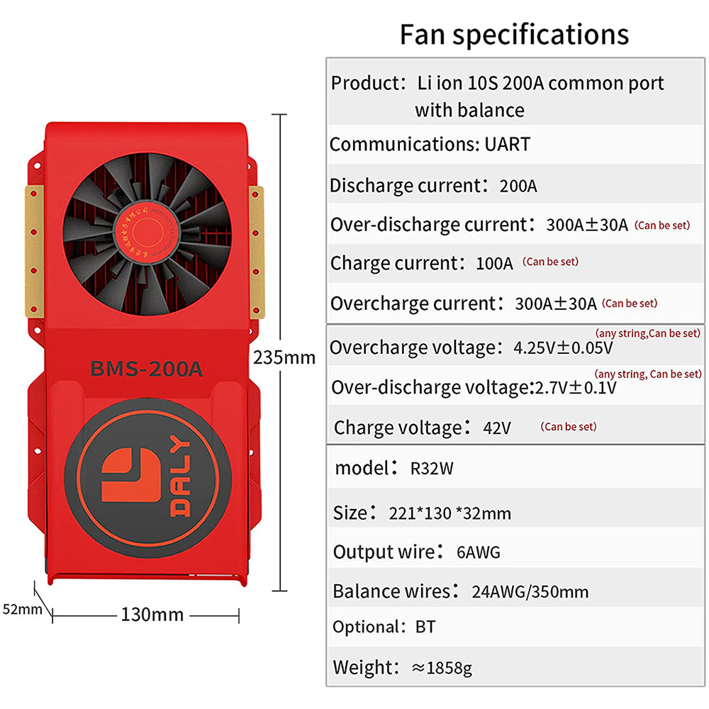 Daly smart bms Lion 10S 36V 200A FAN bluetooth BMS board 52 130 235